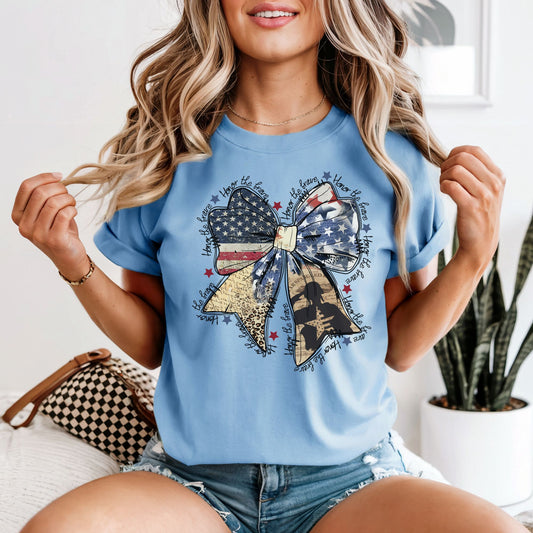 Honor the Brave | American Flag Bow Tee | Comfort Colors Vintage Heavyweight Unisex