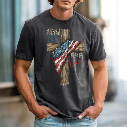 Stand For the Flag, Kneel for the Cross Comfort Colors Vintage Heavyweight Unisex Tee