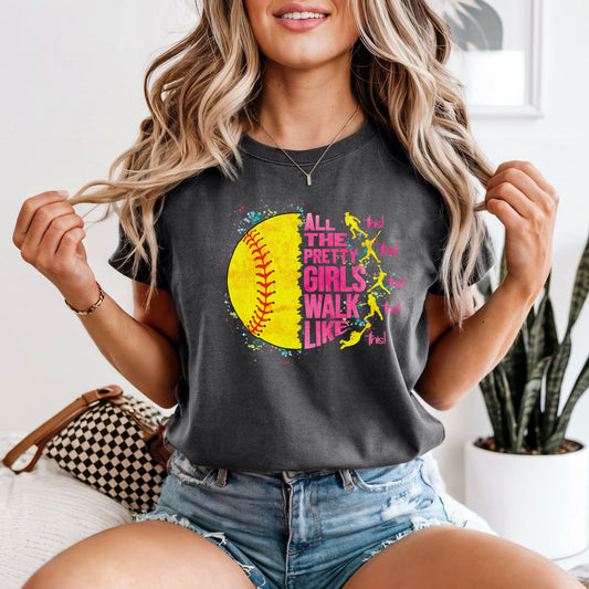 Pretty Girls Walk Like This - Softball Comfort Colors Vintage Heavyweight Tee
